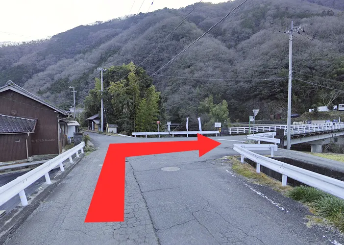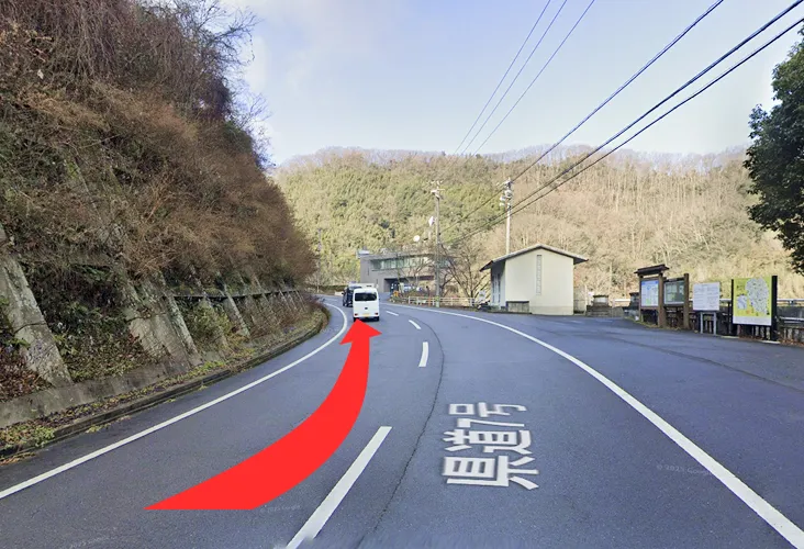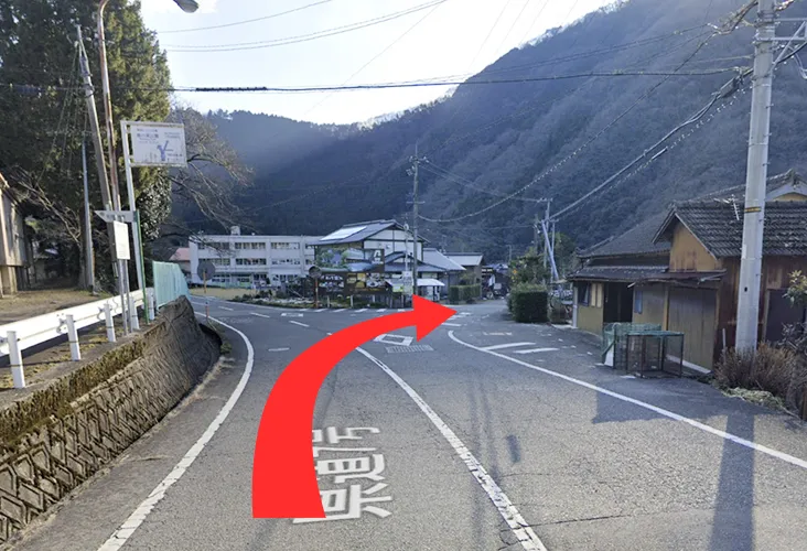 ダム方面に右折出来る道がありますが、細く危ないためご利用はお控えください。