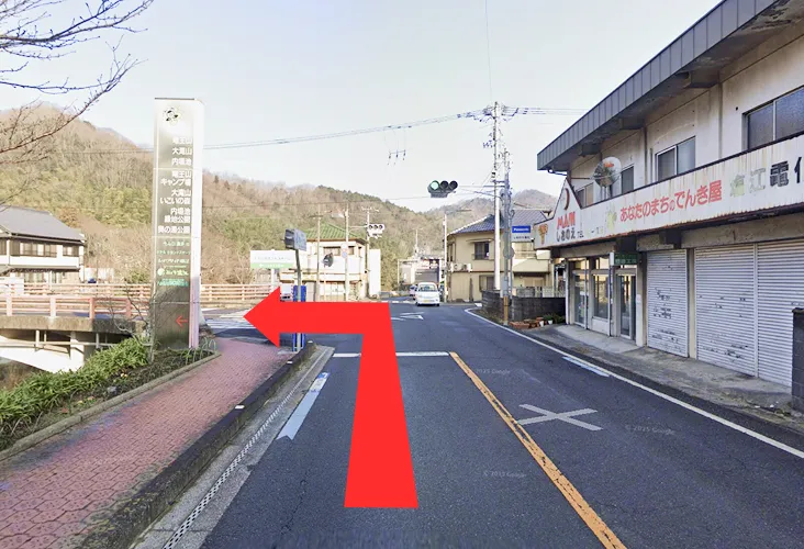 1. しおのえ道の駅手前の交差点を右折します。