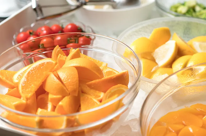 清々しい朝のひとときをお楽しみください。通常はバイキングスタイルですが、和洋コーススタイルの場合がございます。