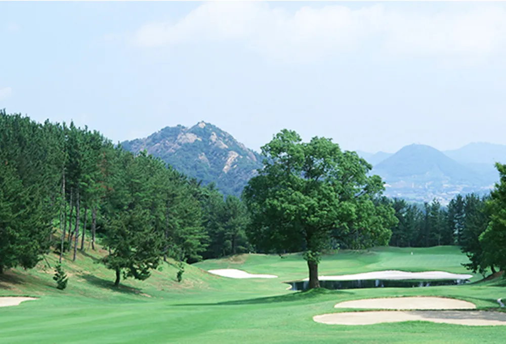 讃岐百景の一つ「嶽山」眼下には緑あふれる讃岐平野、景勝「屋島」そして高松市街地。入念に手入れされた松林の間をぬう氷上コースと鹿庭コースからなる36ホール。日本ゴルフ史を代表する名設計家、富沢誠造氏が精魂込めて作り上げた、香川のチャンピオンコースです。雄大かつ繊細な香川の美とコース戦略の醍醐味を心ゆくまでお楽しみください。