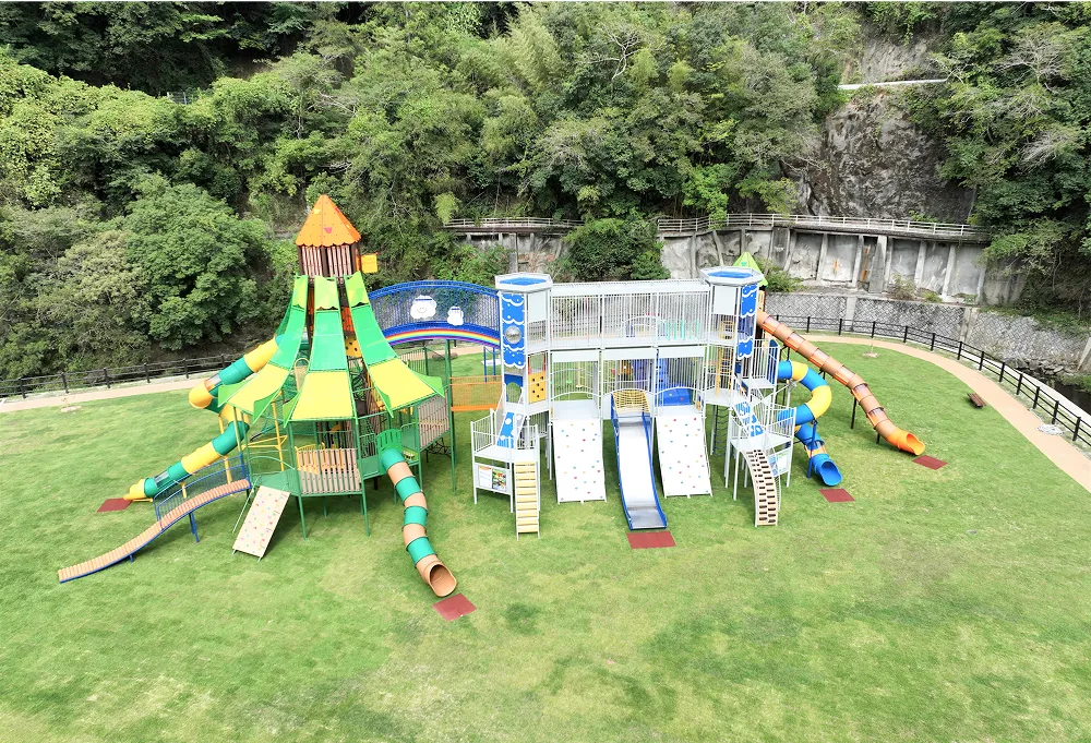 大型遊具やBBQサイトを備え、豊かな自然と迫力あるダムを楽しむことができる公園となっています。